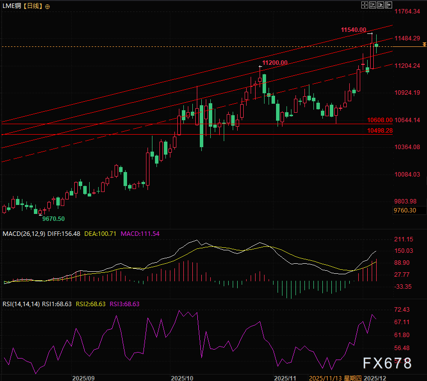 汇通财经APP讯——周四(12月4日)亚欧时段LME铜价冲高回落,铜价尝试挑战周三创出的历史新高11540,最终最高